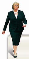 Presidente do ChilePolítica: dirigiu a Juventude Socialista no governo Allende e foi torturada e exilada na ditadura de Pinochet. Foi ministra da Saúde e da Defesa do ex-presidente Ricardo Lagos, quando ganhou projeção para disputar a Presidência
