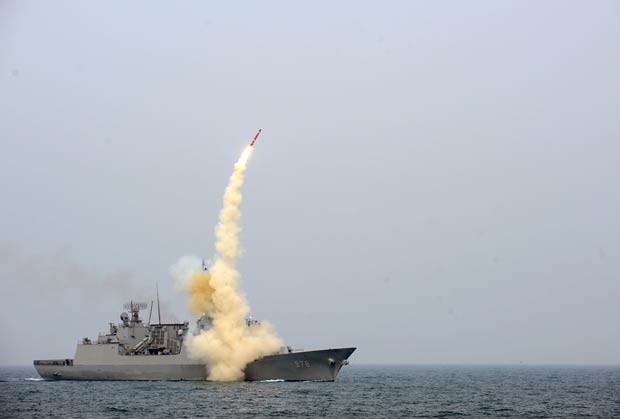 O ministério da Defesa sul-coreano apresentou à imprensa imagens deste míssil que foi mobilizado recentemente, e que pode ser disparado a partir de um barco de guerra ou de um submarino.