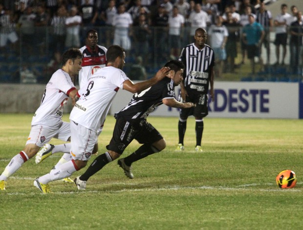 Na noite desta última quinta-feira, 14 de fevereiro, o Vitória, campeão da última edição da Copa do Nordeste, enfrentou o Ceará, no estádio Presidente Vargas, em partida válida pelas quartas de final da Copa do Nordeste 2013, e não decepcionou. Com os gols de Renato Cajá e Escudero e pênalti perdido por Magno Alves pelos donos da casa, o Rubro- Negro baiano venceu a partida por 2×0, garantindo uma boa vantagem para o jogo de volta, no próximo domingo em Salvador, no estádio Barradão, às 16:00h.