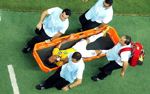 Neymar foi examinado logo depois do jogo ainda no estádio. Logo depois, seguiu para uma clínica particular em Fortaleza acompanhado de José Luiz Runco, médico da seleção. Ele saiu de maca e chegou chorando na Clínica São Carlos, já com medicamento na veia. A previsão de recuperação é de quatro a seis semanas.