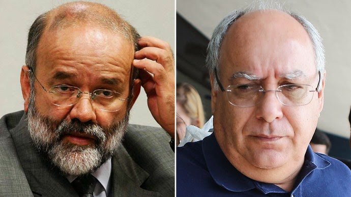 O Ministério Público Federal denunciou 27 pessoas por corrupção, lavagem de dinheiro e formação de quadrilha, entre elas, o tesoureiro do Partido dos Trabalhadores (PT) João Vaccari Neto, vulgo Moch ou Mochila (esq.) e o ex-diretor de Serviços da Petrobras Renato de Souza Duque, vulgo My Way (dir.). Esta é a primeira denúncia contra os dois referentes à Operação Lava-Jato, da Polícia Federal. A informação foi divulgada pelo MPF na tarde desta segunda (16/03), dia em que a 10ª fase da Operação Lava-Jato foi deflagrada.